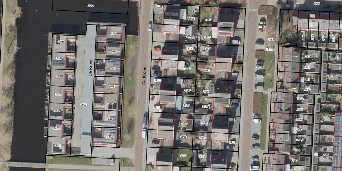 Het perceel waarop De Kroon 33 staat heeft een oppervlakte van 273 m². Dit is een middelgroot perceel. De perceeloppervlakte wordt geregistreerd door het Kadaster. Gedetailleerde informatie over de maten van dit perceel kunt u vinden in het rapport Kadastrale kaart met maatvoering van De Kroon 33.