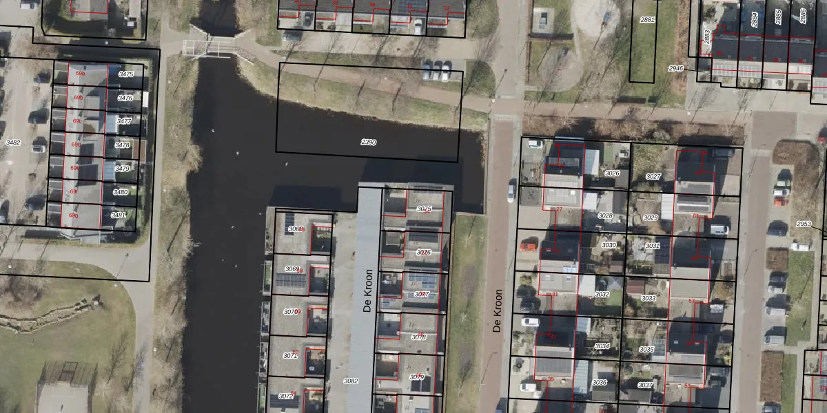 Het perceel waarop De Kroon 54 staat heeft een oppervlakte van 174 m². Dit is een middelgroot perceel. De perceeloppervlakte wordt geregistreerd door het Kadaster. Gedetailleerde informatie over de maten van dit perceel kunt u vinden in het rapport Kadastrale kaart met maatvoering van De Kroon 54.