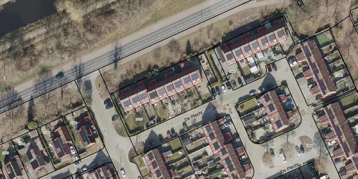 Het perceel waarop De Plecht 15 staat heeft een oppervlakte van 1407 m². Dit is een zeer groot perceel. De perceeloppervlakte wordt geregistreerd door het Kadaster. Gedetailleerde informatie over de maten van dit perceel kunt u vinden in het rapport Kadastrale kaart met maatvoering van De Plecht 15.