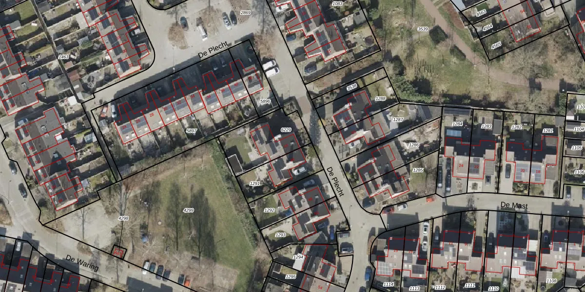 Het perceel waarop De Plecht 44 staat heeft een oppervlakte van 416 m². Dit is een groot perceel. De perceeloppervlakte wordt geregistreerd door het Kadaster. Gedetailleerde informatie over de maten van dit perceel kunt u vinden in het rapport Kadastrale kaart met maatvoering van De Plecht 44.
