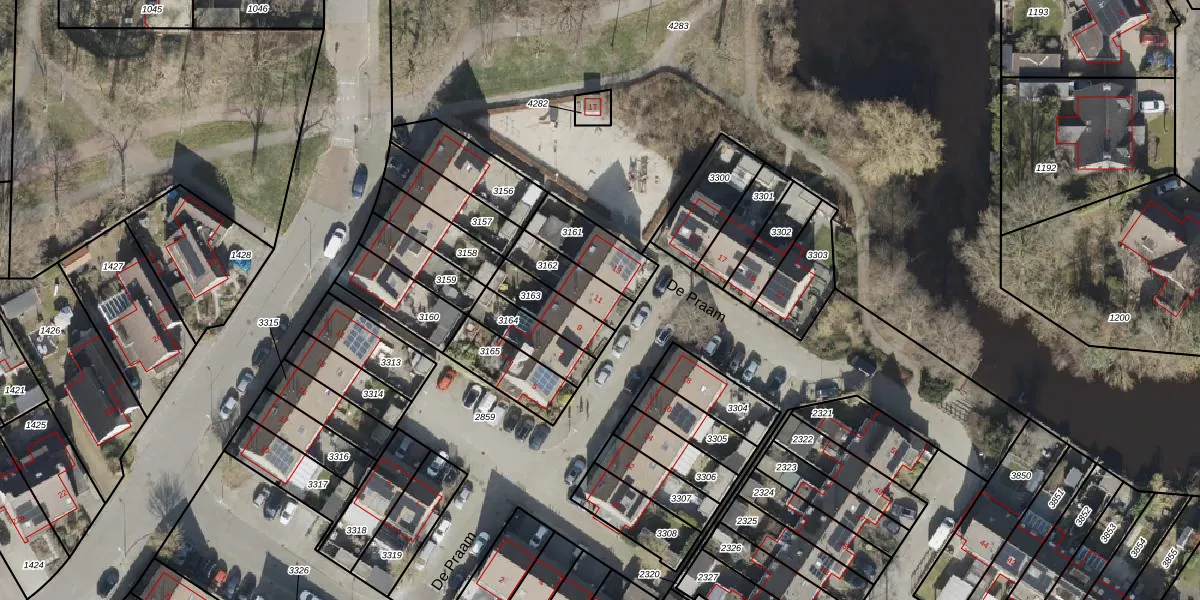 De Praam 11 is gelegen op kadastraal perceel HGV00P3162. Deze kadastrale aanduiding is uniek en wordt gebruikt door het Kadaster om eigendomsrechten en andere zakelijke rechten vast te leggen. Het perceel maakt onderdeel uit van de kadastrale gemeente Hoogeveen.
