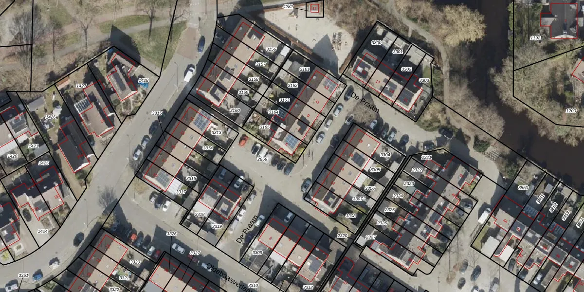 Het perceel waarop De Praam 5 staat heeft een oppervlakte van 166 m². Dit is een middelgroot perceel. De perceeloppervlakte wordt geregistreerd door het Kadaster. Gedetailleerde informatie over de maten van dit perceel kunt u vinden in het rapport Kadastrale kaart met maatvoering van De Praam 5.