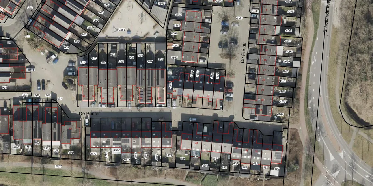 Het perceel waarop De Punter 18 staat heeft een oppervlakte van 120 m². Dit is een middelgroot perceel. De perceeloppervlakte wordt geregistreerd door het Kadaster. Gedetailleerde informatie over de maten van dit perceel kunt u vinden in het rapport Kadastrale kaart met maatvoering van De Punter 18.