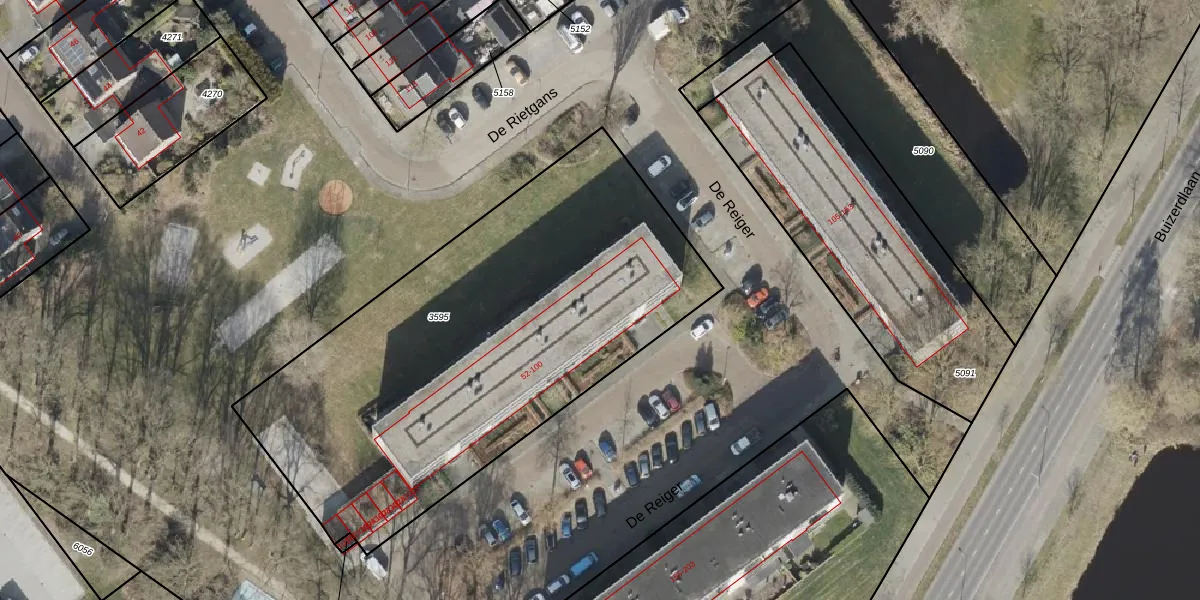Het perceel waarop De Reiger 84 staat heeft een oppervlakte van 2575 m². Dit is een zeer groot perceel. De perceeloppervlakte wordt geregistreerd door het Kadaster. Gedetailleerde informatie over de maten van dit perceel kunt u vinden in het rapport Kadastrale kaart met maatvoering van De Reiger 84.