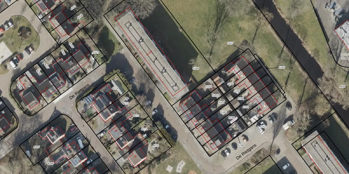Het perceel waarop De Rietgans 101 staat heeft een oppervlakte van 2022 m². Dit is een zeer groot perceel. De perceeloppervlakte wordt geregistreerd door het Kadaster. Gedetailleerde informatie over de maten van dit perceel kunt u vinden in het rapport Kadastrale kaart met maatvoering van De Rietgans 101.