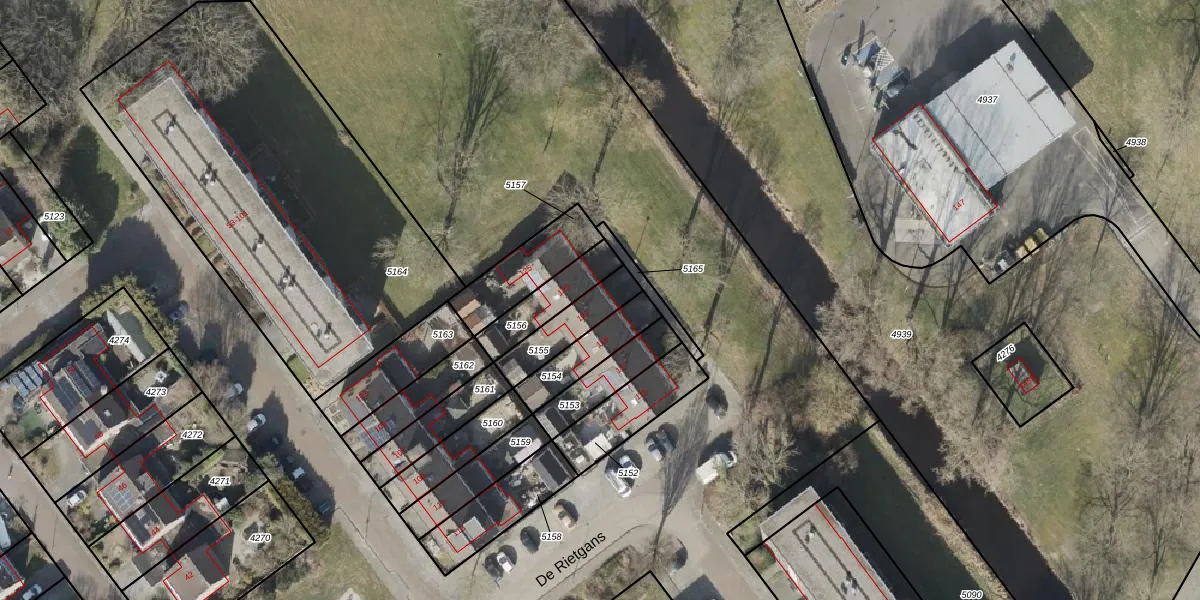 De Rietgans 121 is gelegen op kadastraal perceel HGV00D5155. Deze kadastrale aanduiding is uniek en wordt gebruikt door het Kadaster om eigendomsrechten en andere zakelijke rechten vast te leggen. Het perceel maakt onderdeel uit van de kadastrale gemeente Hoogeveen.