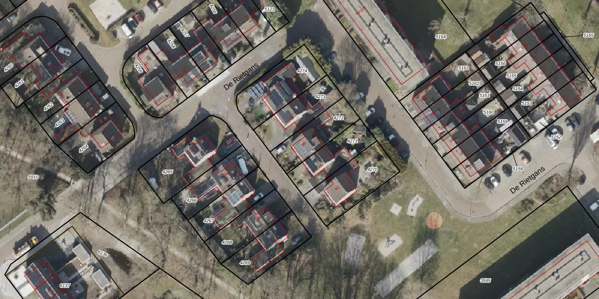 De Rietgans 46 is gelegen op kadastraal perceel HGV00D4272. Deze kadastrale aanduiding is uniek en wordt gebruikt door het Kadaster om eigendomsrechten en andere zakelijke rechten vast te leggen. Het perceel maakt onderdeel uit van de kadastrale gemeente Hoogeveen.