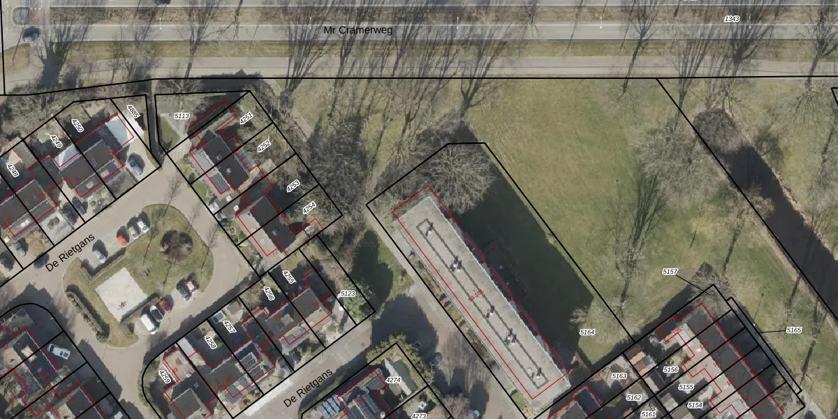De Rietgans 57 is gelegen op kadastraal perceel HGV00D5164. Deze kadastrale aanduiding is uniek en wordt gebruikt door het Kadaster om eigendomsrechten en andere zakelijke rechten vast te leggen. Het perceel maakt onderdeel uit van de kadastrale gemeente Hoogeveen.