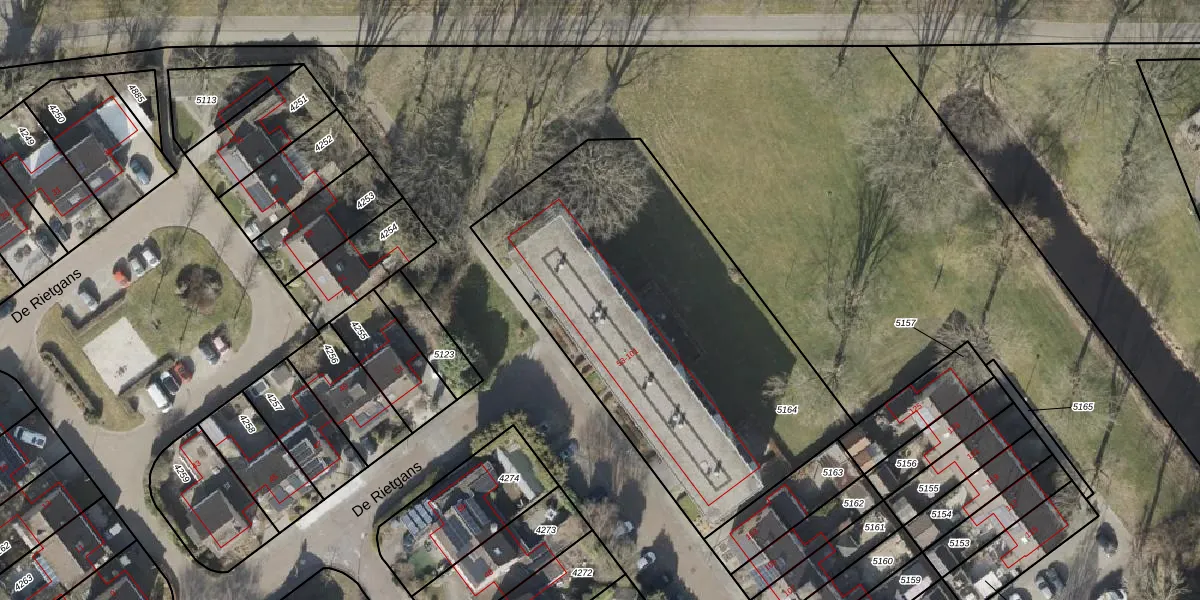 De Rietgans 69 is gelegen op kadastraal perceel HGV00D5164. Deze kadastrale aanduiding is uniek en wordt gebruikt door het Kadaster om eigendomsrechten en andere zakelijke rechten vast te leggen. Het perceel maakt onderdeel uit van de kadastrale gemeente Hoogeveen.