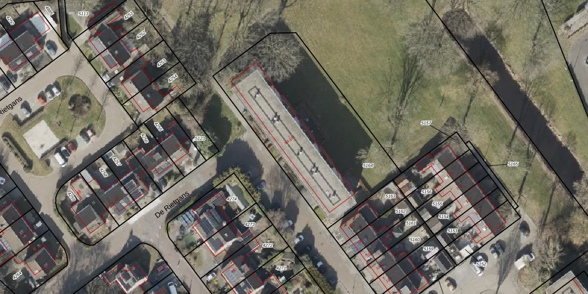 De Rietgans 79 is gelegen op kadastraal perceel HGV00D5164. Deze kadastrale aanduiding is uniek en wordt gebruikt door het Kadaster om eigendomsrechten en andere zakelijke rechten vast te leggen. Het perceel maakt onderdeel uit van de kadastrale gemeente Hoogeveen.