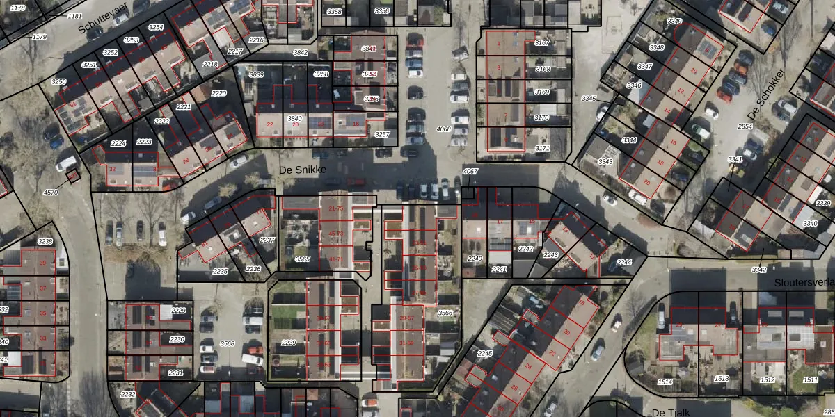 Het perceel waarop De Snikke 21-a staat heeft een oppervlakte van 868 m². Dit is een groot perceel. De perceeloppervlakte wordt geregistreerd door het Kadaster. Gedetailleerde informatie over de maten van dit perceel kunt u vinden in het rapport Kadastrale kaart met maatvoering van De Snikke 21-a.