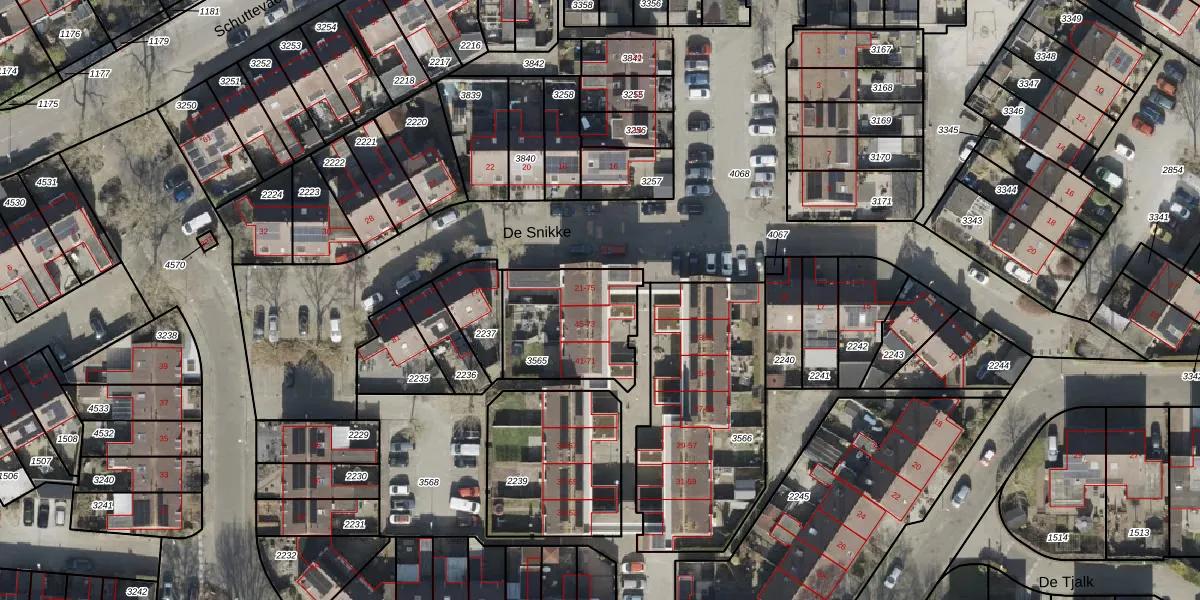 Het perceel waarop De Snikke 47 staat heeft een oppervlakte van 412 m². Dit is een groot perceel. De perceeloppervlakte wordt geregistreerd door het Kadaster. Gedetailleerde informatie over de maten van dit perceel kunt u vinden in het rapport Kadastrale kaart met maatvoering van De Snikke 47.