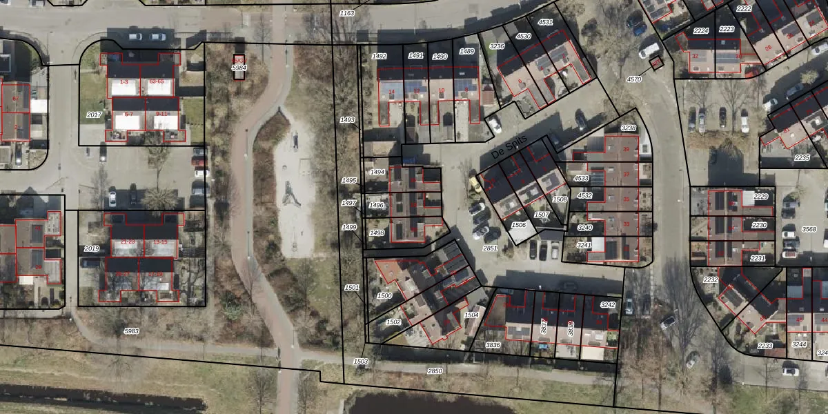 Het perceel waarop De Spits 18 staat heeft een oppervlakte van 111 m². Dit is een middelgroot perceel. De perceeloppervlakte wordt geregistreerd door het Kadaster. Gedetailleerde informatie over de maten van dit perceel kunt u vinden in het rapport Kadastrale kaart met maatvoering van De Spits 18.