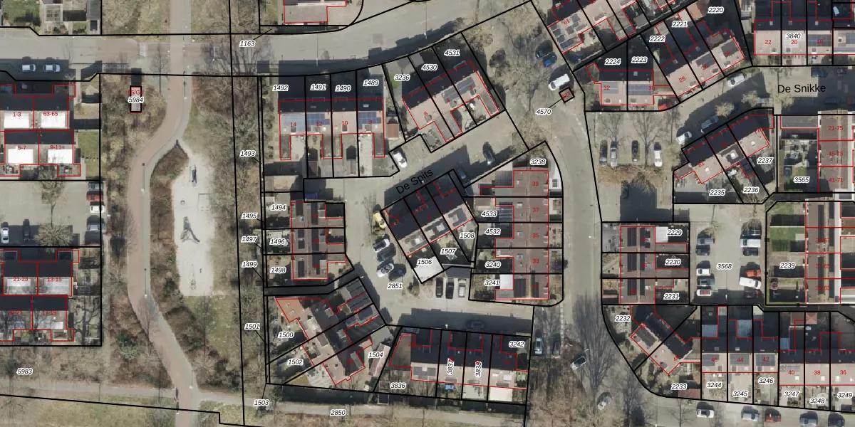 Het perceel waarop De Spits 3 staat heeft een oppervlakte van 124 m². Dit is een middelgroot perceel. De perceeloppervlakte wordt geregistreerd door het Kadaster. Gedetailleerde informatie over de maten van dit perceel kunt u vinden in het rapport Kadastrale kaart met maatvoering van De Spits 3.
