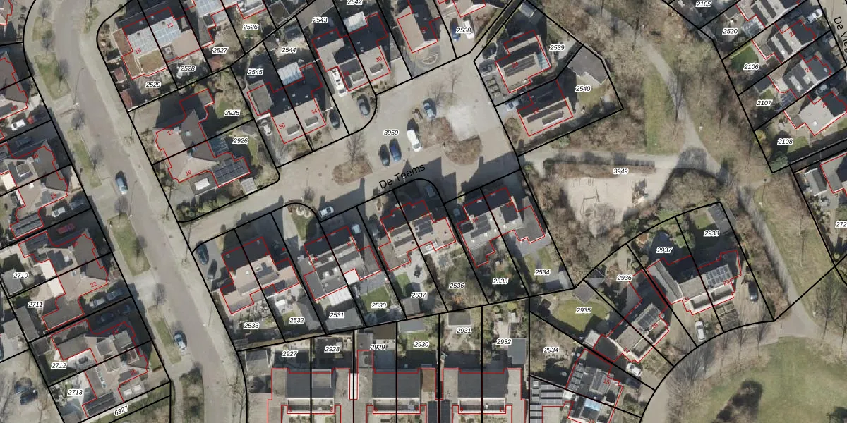Het perceel waarop De Teems 12 staat heeft een oppervlakte van 310 m². Dit is een groot perceel. De perceeloppervlakte wordt geregistreerd door het Kadaster. Gedetailleerde informatie over de maten van dit perceel kunt u vinden in het rapport Kadastrale kaart met maatvoering van De Teems 12.