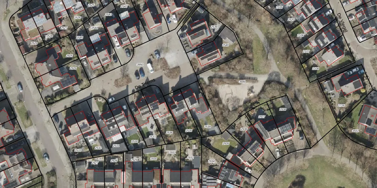De Teems 16 is gelegen op kadastraal perceel HGV00P2534. Deze kadastrale aanduiding is uniek en wordt gebruikt door het Kadaster om eigendomsrechten en andere zakelijke rechten vast te leggen. Het perceel maakt onderdeel uit van de kadastrale gemeente Hoogeveen.