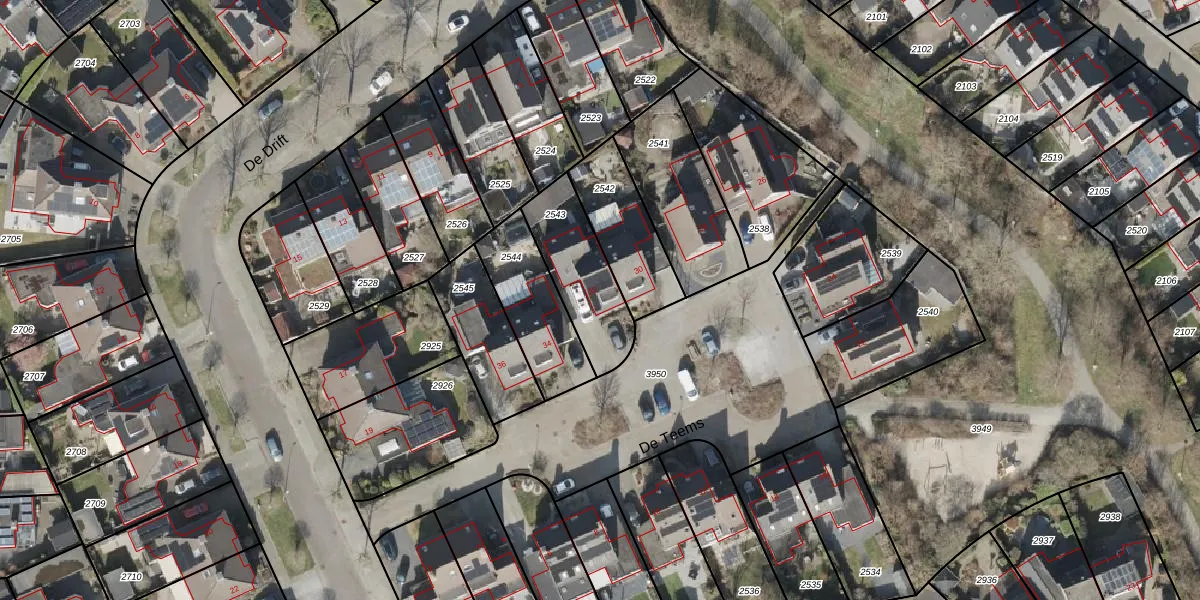 De Teems 32 is gelegen op kadastraal perceel HGV00P2543. Deze kadastrale aanduiding is uniek en wordt gebruikt door het Kadaster om eigendomsrechten en andere zakelijke rechten vast te leggen. Het perceel maakt onderdeel uit van de kadastrale gemeente Hoogeveen.