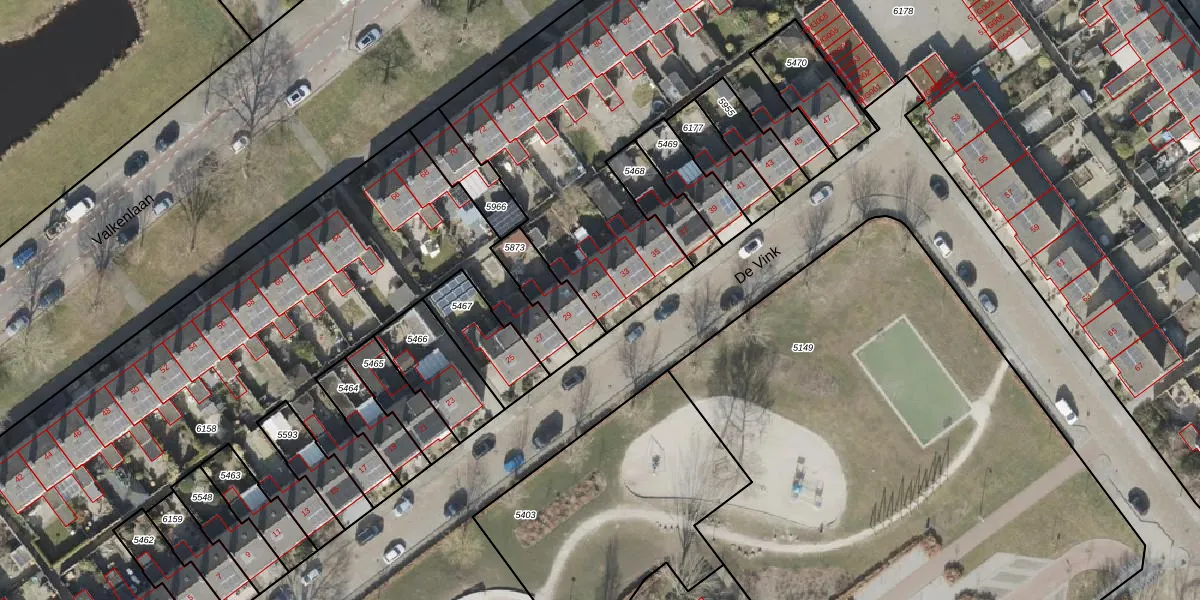 Het perceel waarop De Vink 31 staat heeft een oppervlakte van 8072 m². Dit is een zeer groot perceel. De perceeloppervlakte wordt geregistreerd door het Kadaster. Gedetailleerde informatie over de maten van dit perceel kunt u vinden in het rapport Kadastrale kaart met maatvoering van De Vink 31.