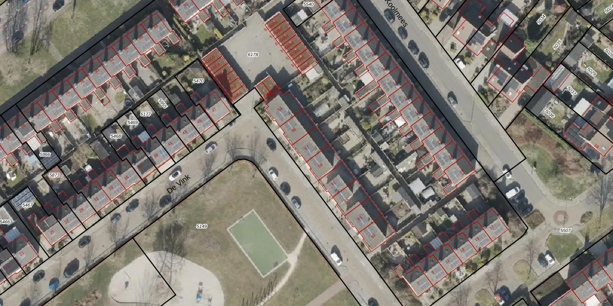 Het perceel waarop De Vink 57 staat heeft een oppervlakte van 8072 m². Dit is een zeer groot perceel. De perceeloppervlakte wordt geregistreerd door het Kadaster. Gedetailleerde informatie over de maten van dit perceel kunt u vinden in het rapport Kadastrale kaart met maatvoering van De Vink 57.