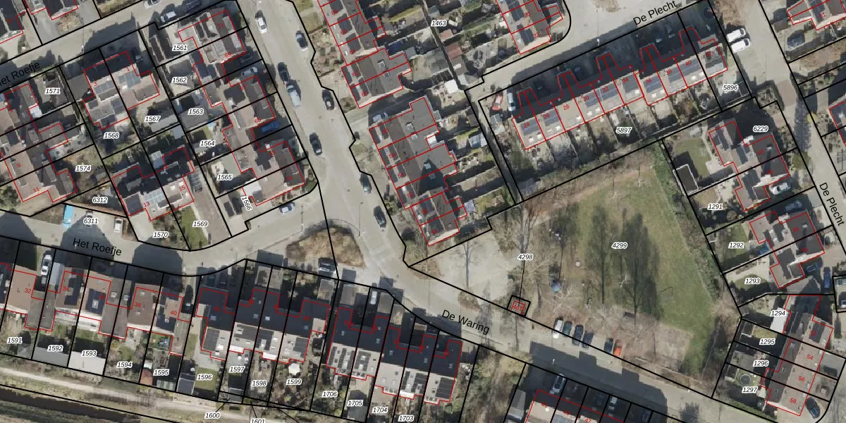 Het perceel waarop De Waring 50 staat heeft een oppervlakte van 3226 m². Dit is een zeer groot perceel. De perceeloppervlakte wordt geregistreerd door het Kadaster. Gedetailleerde informatie over de maten van dit perceel kunt u vinden in het rapport Kadastrale kaart met maatvoering van De Waring 50.