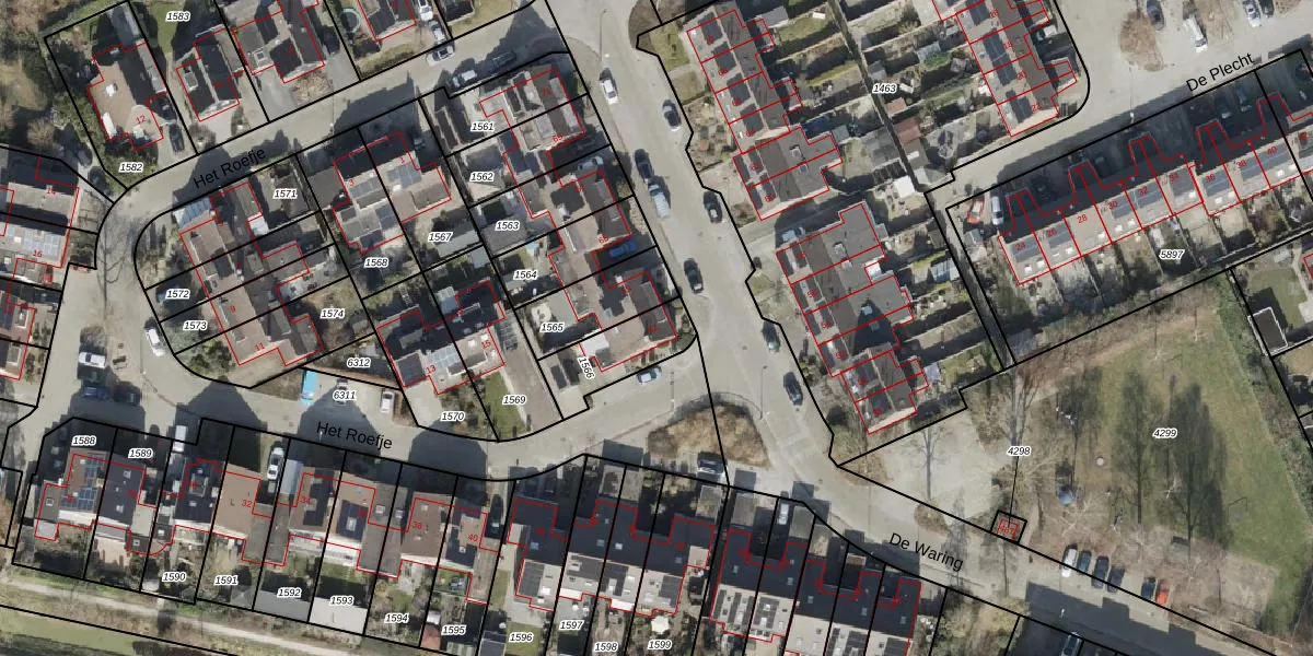 Gebruik de zoekbalk of klik op een perceel voor informatie over de adressen binnen dit perceel.