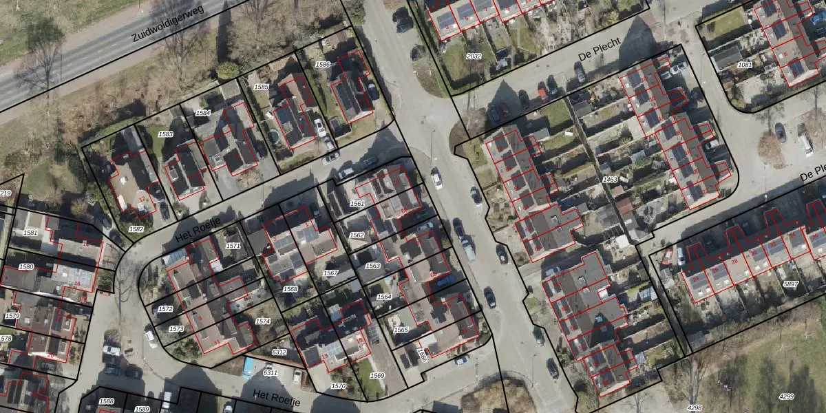 Gebruik de zoekbalk of klik op een perceel voor informatie over de adressen binnen dit perceel.