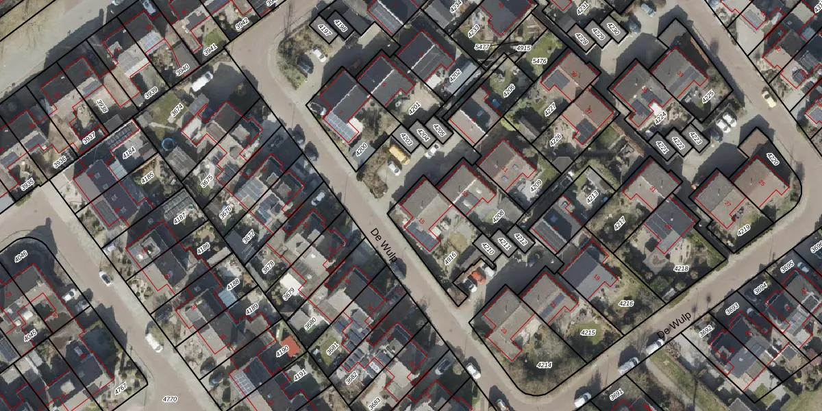 Het perceel waarop De Wulp 15 staat heeft een oppervlakte van 355 m². Dit is een groot perceel. De perceeloppervlakte wordt geregistreerd door het Kadaster. Gedetailleerde informatie over de maten van dit perceel kunt u vinden in het rapport Kadastrale kaart met maatvoering van De Wulp 15.