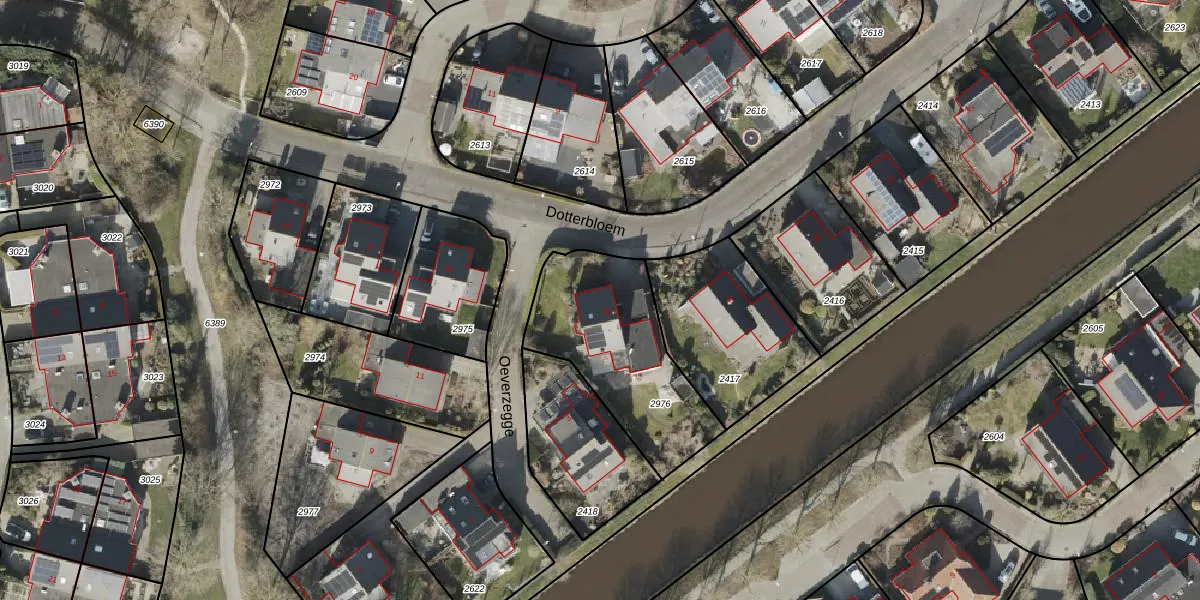 Dotterbloem 43 is gelegen op kadastraal perceel HGV00P2976. Deze kadastrale aanduiding is uniek en wordt gebruikt door het Kadaster om eigendomsrechten en andere zakelijke rechten vast te leggen. Het perceel maakt onderdeel uit van de kadastrale gemeente Hoogeveen.