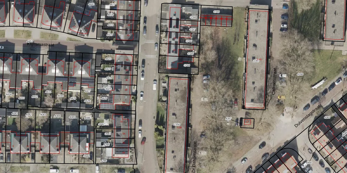 Het perceel waarop Dr Dassenstraat 49 staat heeft een oppervlakte van 733 m². Dit is een groot perceel. De perceeloppervlakte wordt geregistreerd door het Kadaster. Gedetailleerde informatie over de maten van dit perceel kunt u vinden in het rapport Kadastrale kaart met maatvoering van Dr Dassenstraat 49.