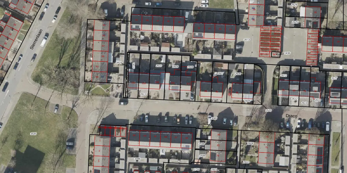 Het perceel waarop Draco 104 staat heeft een oppervlakte van 236 m². Dit is een middelgroot perceel. De perceeloppervlakte wordt geregistreerd door het Kadaster. Gedetailleerde informatie over de maten van dit perceel kunt u vinden in het rapport Kadastrale kaart met maatvoering van Draco 104.