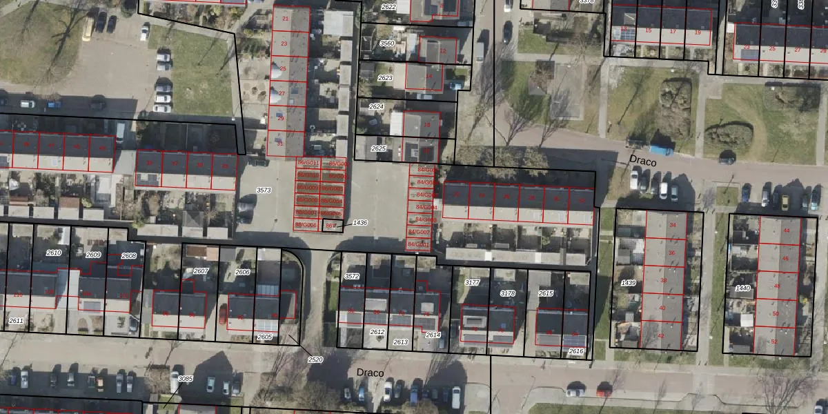 Draco 84-G004 is gelegen op kadastraal perceel HGV00C3573. Deze kadastrale aanduiding is uniek en wordt gebruikt door het Kadaster om eigendomsrechten en andere zakelijke rechten vast te leggen. Het perceel maakt onderdeel uit van de kadastrale gemeente Hoogeveen.