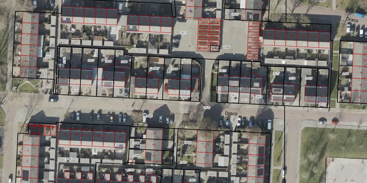 Draco 90 is gelegen op kadastraal perceel HGV00C2605. Deze kadastrale aanduiding is uniek en wordt gebruikt door het Kadaster om eigendomsrechten en andere zakelijke rechten vast te leggen. Het perceel maakt onderdeel uit van de kadastrale gemeente Hoogeveen.