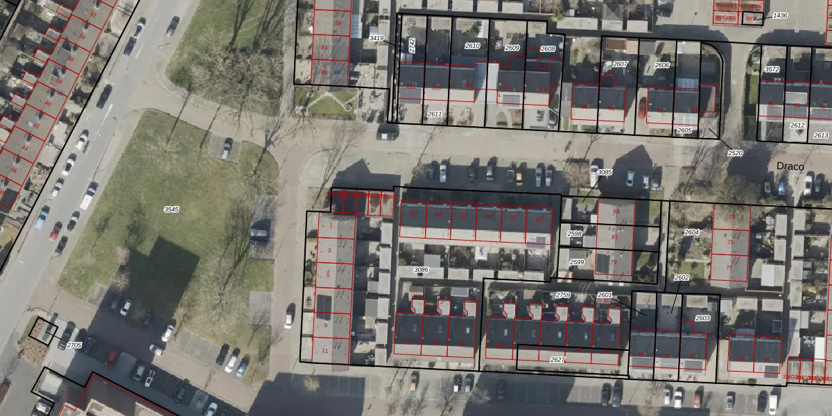Draco 95 is gelegen op kadastraal perceel HGV00C3086. Deze kadastrale aanduiding is uniek en wordt gebruikt door het Kadaster om eigendomsrechten en andere zakelijke rechten vast te leggen. Het perceel maakt onderdeel uit van de kadastrale gemeente Hoogeveen.