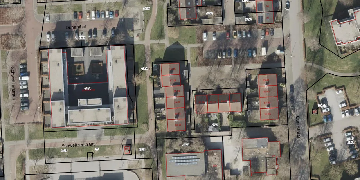 Het perceel waarop Dunanthof 21 staat heeft een oppervlakte van 2244 m². Dit is een zeer groot perceel. De perceeloppervlakte wordt geregistreerd door het Kadaster. Gedetailleerde informatie over de maten van dit perceel kunt u vinden in het rapport Kadastrale kaart met maatvoering van Dunanthof 21.
