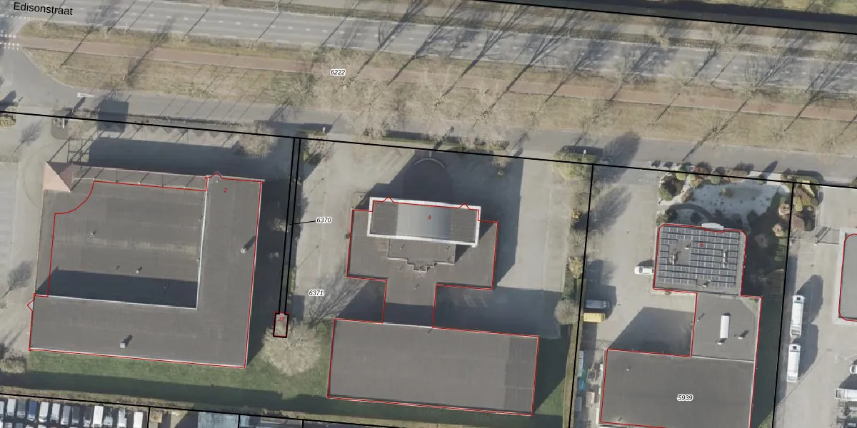 Edisonstraat 4 is gelegen op kadastraal perceel HGV00A6371. Deze kadastrale aanduiding is uniek en wordt gebruikt door het Kadaster om eigendomsrechten en andere zakelijke rechten vast te leggen. Het perceel maakt onderdeel uit van de kadastrale gemeente Hoogeveen.