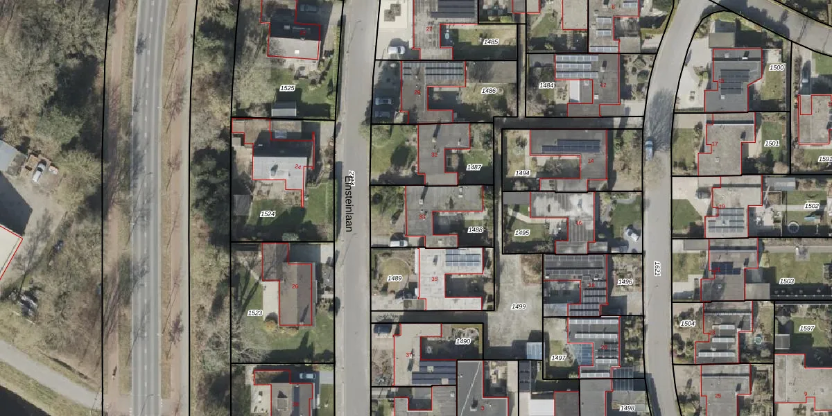 Het perceel waarop Einsteinlaan 33 staat heeft een oppervlakte van 446 m². Dit is een groot perceel. De perceeloppervlakte wordt geregistreerd door het Kadaster. Gedetailleerde informatie over de maten van dit perceel kunt u vinden in het rapport Kadastrale kaart met maatvoering van Einsteinlaan 33.
