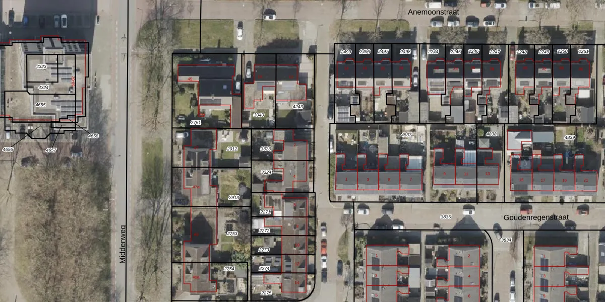 Het perceel waarop Geraniumstraat 2 staat heeft een oppervlakte van 220 m². Dit is een middelgroot perceel. De perceeloppervlakte wordt geregistreerd door het Kadaster. Gedetailleerde informatie over de maten van dit perceel kunt u vinden in het rapport Kadastrale kaart met maatvoering van Geraniumstraat 2.