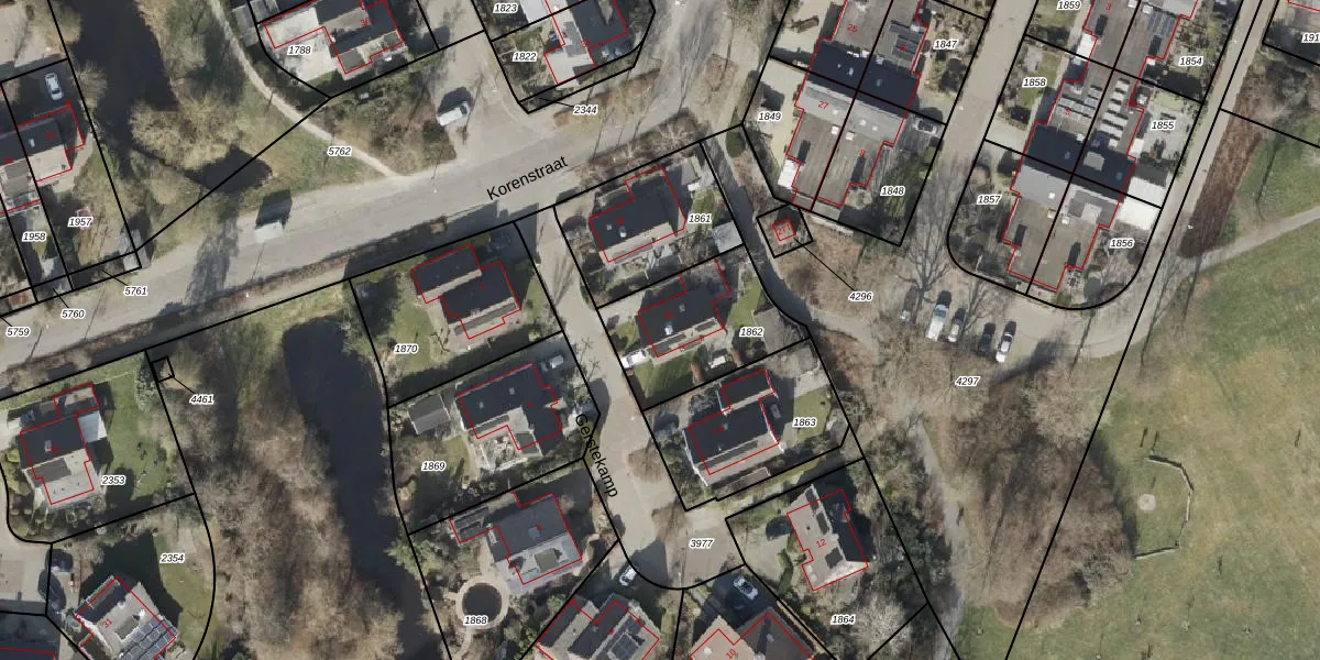 Gebruik de zoekbalk of klik op een perceel voor informatie over de adressen binnen dit perceel.