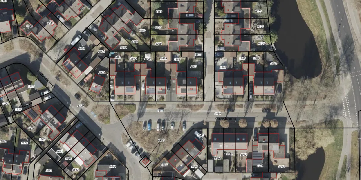 Het perceel waarop Graskamp 12 staat heeft een oppervlakte van 228 m². Dit is een middelgroot perceel. De perceeloppervlakte wordt geregistreerd door het Kadaster. Gedetailleerde informatie over de maten van dit perceel kunt u vinden in het rapport Kadastrale kaart met maatvoering van Graskamp 12.