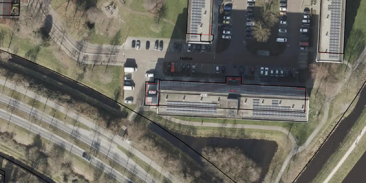 Het perceel waarop Helios 100 staat heeft een oppervlakte van 1127 m². Dit is een zeer groot perceel. De perceeloppervlakte wordt geregistreerd door het Kadaster. Gedetailleerde informatie over de maten van dit perceel kunt u vinden in het rapport Kadastrale kaart met maatvoering van Helios 100.