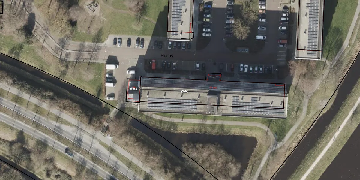 Het perceel waarop Helios 102 staat heeft een oppervlakte van 1127 m². Dit is een zeer groot perceel. De perceeloppervlakte wordt geregistreerd door het Kadaster. Gedetailleerde informatie over de maten van dit perceel kunt u vinden in het rapport Kadastrale kaart met maatvoering van Helios 102.