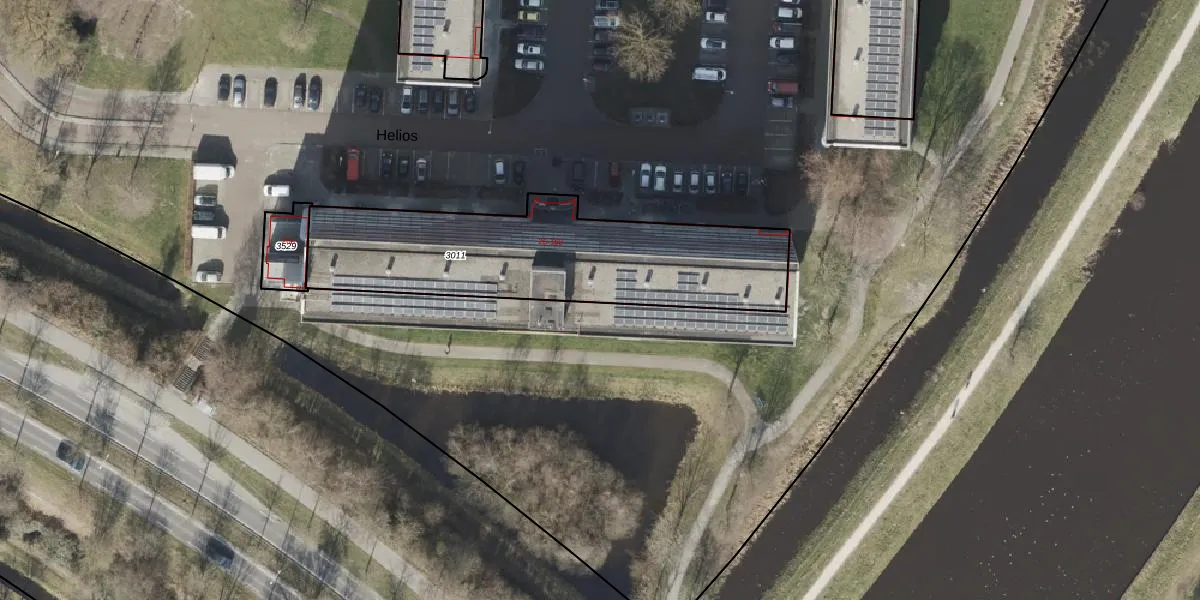 Het perceel waarop Helios 36 staat heeft een oppervlakte van 1127 m². Dit is een zeer groot perceel. De perceeloppervlakte wordt geregistreerd door het Kadaster. Gedetailleerde informatie over de maten van dit perceel kunt u vinden in het rapport Kadastrale kaart met maatvoering van Helios 36.
