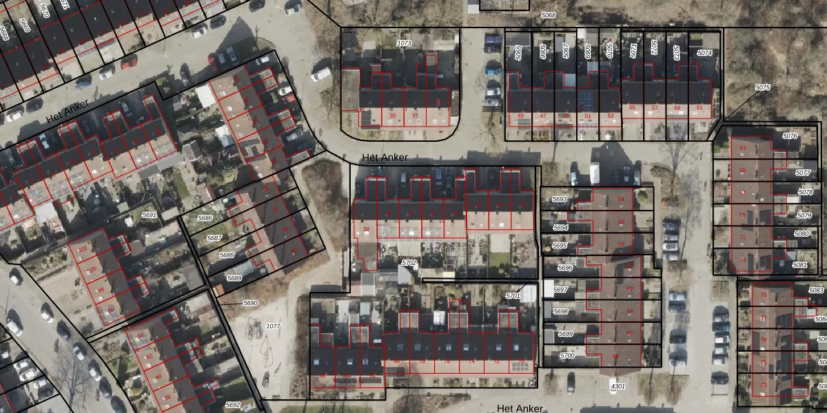 Het perceel waarop Het Anker 42 staat heeft een oppervlakte van 2686 m². Dit is een zeer groot perceel. De perceeloppervlakte wordt geregistreerd door het Kadaster. Gedetailleerde informatie over de maten van dit perceel kunt u vinden in het rapport Kadastrale kaart met maatvoering van Het Anker 42.