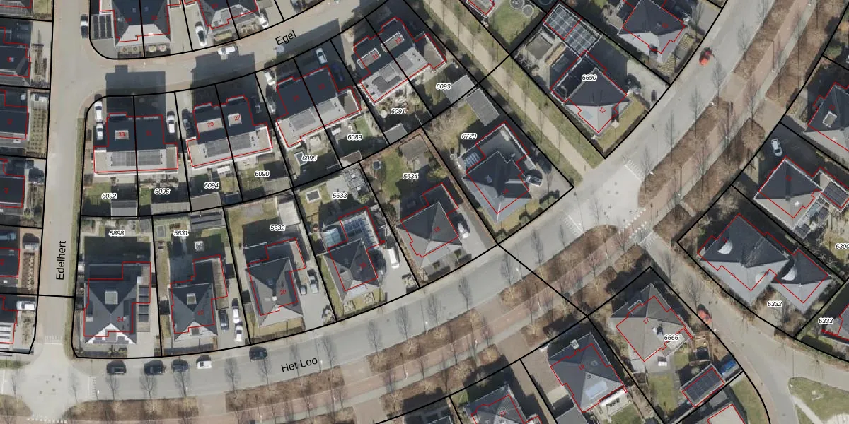 Het perceel waarop Het Loo 16 staat heeft een oppervlakte van 630 m². Dit is een groot perceel. De perceeloppervlakte wordt geregistreerd door het Kadaster. Gedetailleerde informatie over de maten van dit perceel kunt u vinden in het rapport Kadastrale kaart met maatvoering van Het Loo 16.