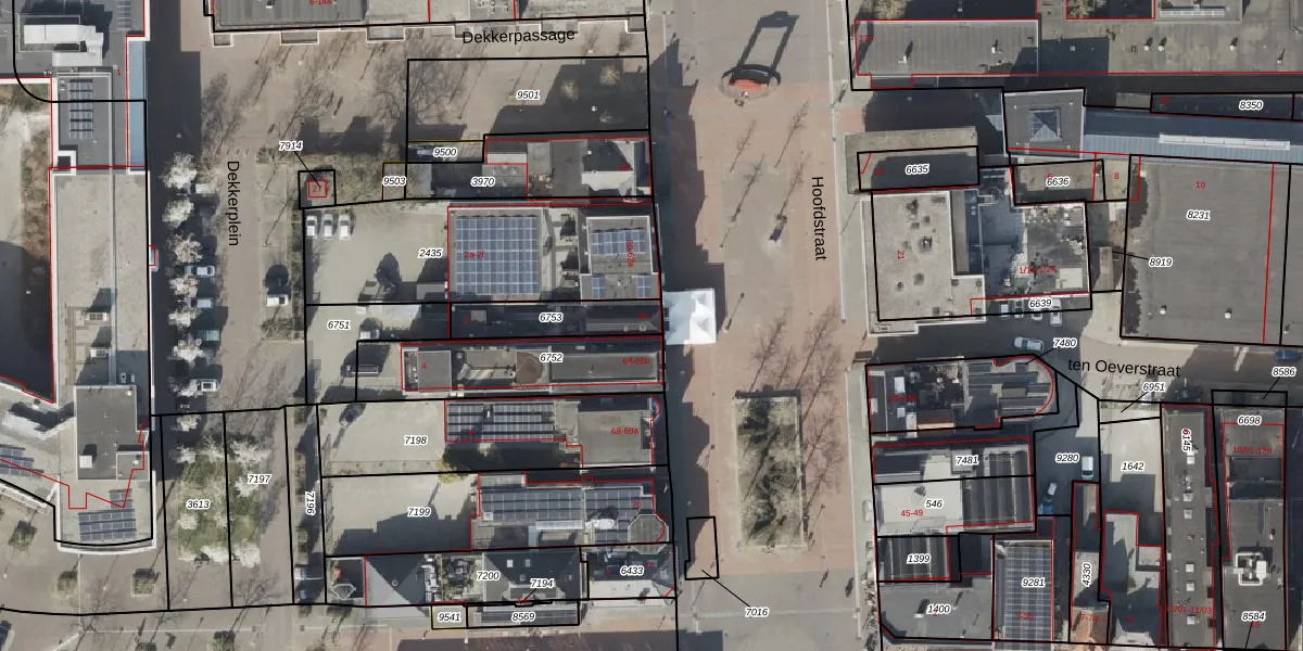 Het perceel waarop het adres ligt is HGV00-O-6753. De afkorting 'HGV00' staat voor kadastrale gemeente Hoogeveen. Het perceel is 174 m² groot. Dat is kleiner dan de gemiddelde perceeloppervlakte in Hoogeveen, dat op 4424,54 m² ligt. Het kleinste perceel in de kadastrale gemeente is 0 m² groot. De grootste perceeloppervlakte is 56,8 ha. Er zijn 2 adressen aanwezig op het perceel. De huidige grenzen van het perceel zijn digitaal in de Basisregistratie Kadaster (BRK) geregistreerd op 01-10-2008.