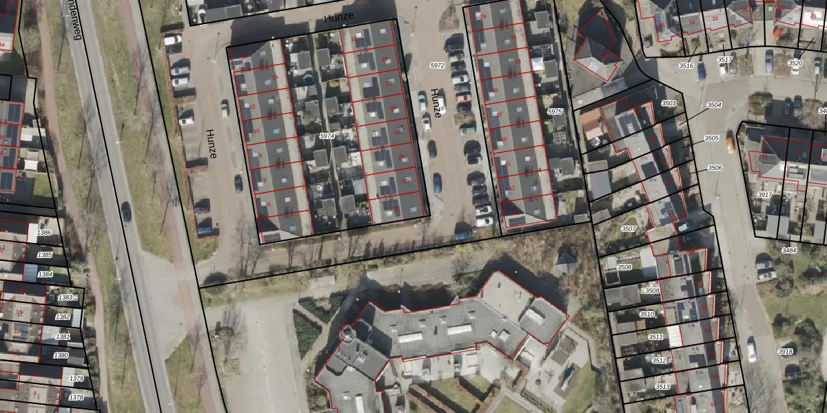 Het perceel waarop Hunze 32 staat heeft een oppervlakte van 2025 m². Dit is een zeer groot perceel. De perceeloppervlakte wordt geregistreerd door het Kadaster. Gedetailleerde informatie over de maten van dit perceel kunt u vinden in het rapport Kadastrale kaart met maatvoering van Hunze 32.