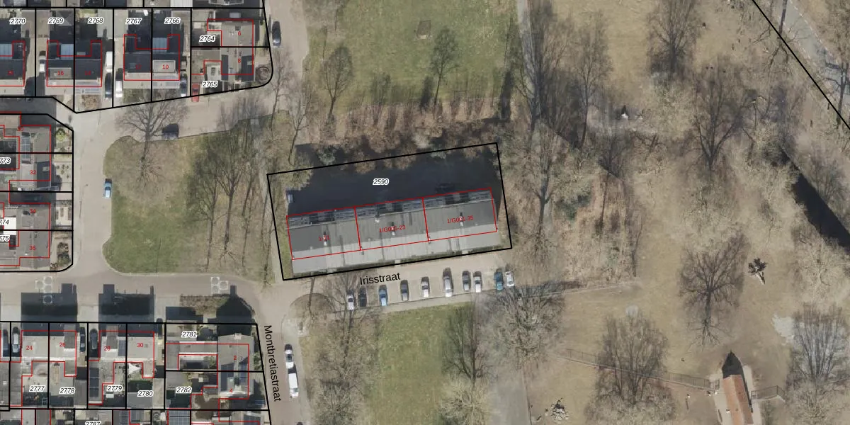 Irisstraat 21 is gelegen op kadastraal perceel HGV00I2590. Deze kadastrale aanduiding is uniek en wordt gebruikt door het Kadaster om eigendomsrechten en andere zakelijke rechten vast te leggen. Het perceel maakt onderdeel uit van de kadastrale gemeente Hoogeveen.