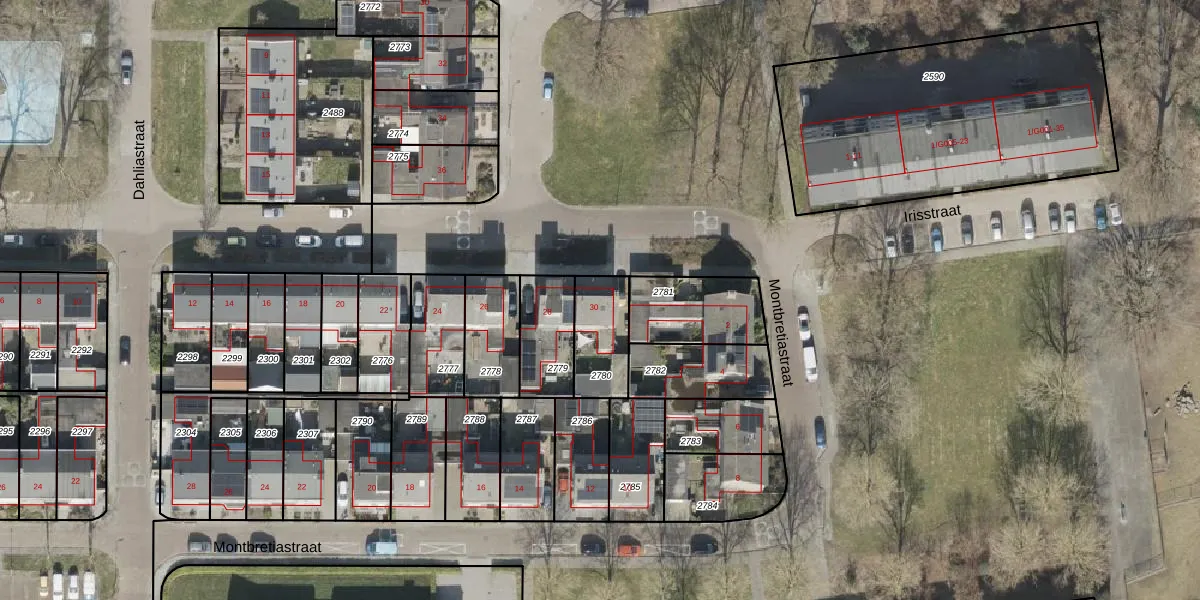 Gebruik de zoekbalk of klik op een perceel voor informatie over de adressen binnen dit perceel.