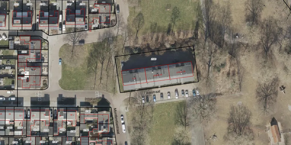 Irisstraat 9 is gelegen op kadastraal perceel HGV00I2590. Deze kadastrale aanduiding is uniek en wordt gebruikt door het Kadaster om eigendomsrechten en andere zakelijke rechten vast te leggen. Het perceel maakt onderdeel uit van de kadastrale gemeente Hoogeveen.