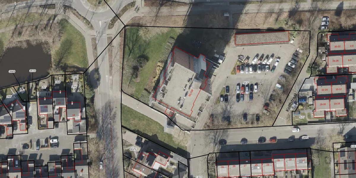 Het perceel waarop het adres ligt is HGV00-P-557. De afkorting 'HGV00' staat voor kadastrale gemeente Hoogeveen. De gemiddelde perceeloppervlakte in de kadastrale gemeente Hoogeveen is 4425,14 m². Dit perceel is met zijn 5069 m² dus groter dan gemiddeld. Het grootste perceel in de kadastrale gemeente is 56,8 ha. Het kleinste perceel heeft een oppervlakte van 0 m². Er zijn 72 adressen aanwezig op het perceel. De huidige grenzen van het perceel zijn digitaal in de Basisregistratie Kadaster (BRK) geregistreerd op 30-11-2010.